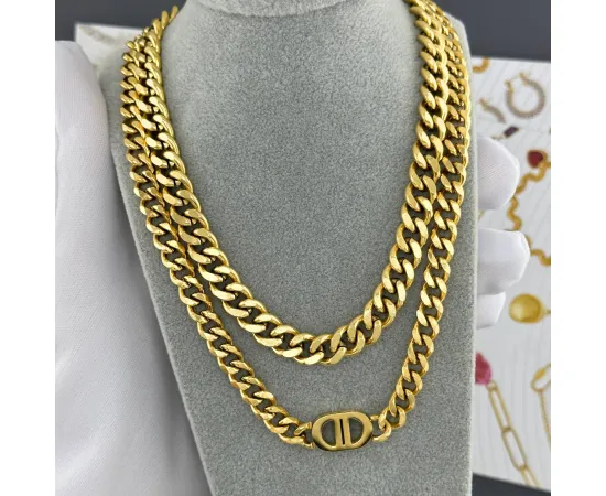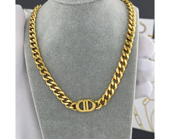 Modern și sofisticat, acest colier placat cu aur combină un lanț elegant cu un pandantiv iconic în formă de dublu D oglindat, simbol al stilului și rafinamentului. Designul său distinctiv și strălucitor îl transformă într-un accesoriu statement, perfect pentru a completa orice ținută, de la casual chic la elegant de seară.