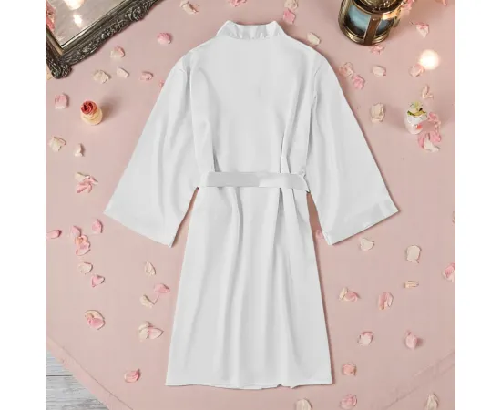 • Halat alb elegant – cu mâneci fluide și cordon, perfect pentru un plus de eleganță în intimitatea casei