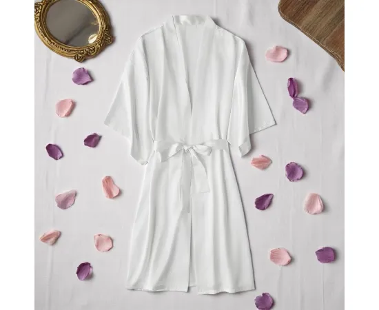 • Halat alb elegant – cu mâneci fluide și cordon, perfect pentru un plus de eleganță în intimitatea casei