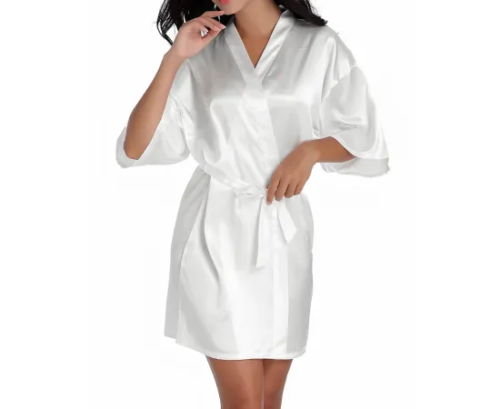 Compleu 2 Piese Dama, Halat si Cămașă de Noapte din Satin, Culoare Alb - MEI01