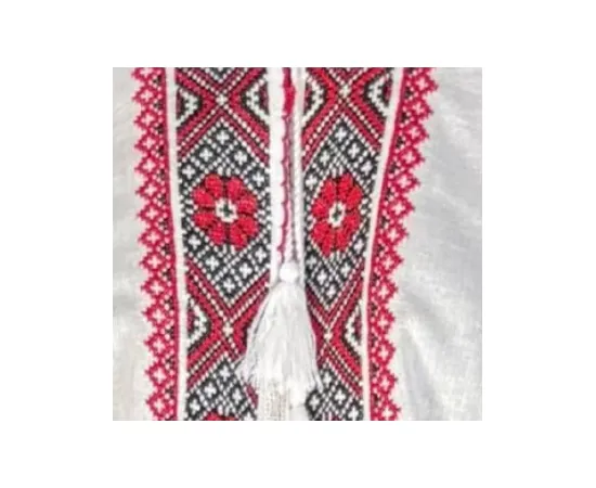 Compleu Traditional Alb pentru Baieti cu Motiv Geometric Rosu - IMS27RS