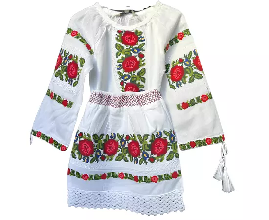 Compleu traditional alb pentru fetite cu motiv floral rosu - RTF18