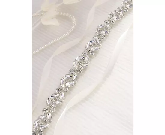 Cordonul rochiei model cu strasuri este o piesă elegantă și strălucitoare, menită să completeze și să sublinieze frumusețea unei rochii sau a unei ținute. Acest cordon este realizat cu atenție la detalii și cu un design sofisticat, având ca element central strasurile, care conferă un aspect sclipitor și luxos.