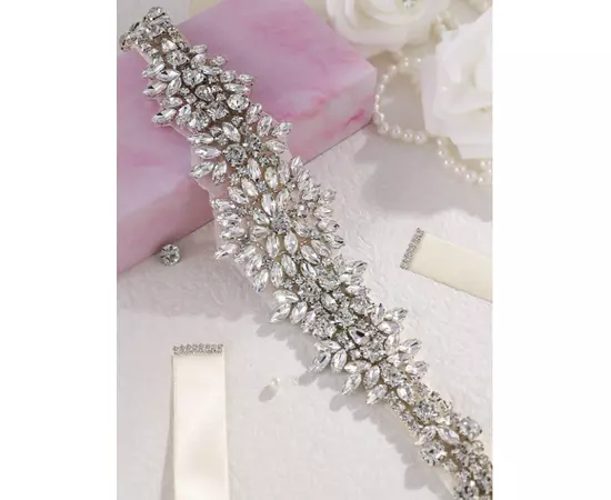 Cordonul rochiei model cu strasuri este o piesă elegantă și strălucitoare, menită să completeze și să sublinieze frumusețea unei rochii sau a unei ținute. Acest cordon este realizat cu atenție la detalii și cu un design sofisticat, având ca element central strasurile, care conferă un aspect sclipitor și luxos.