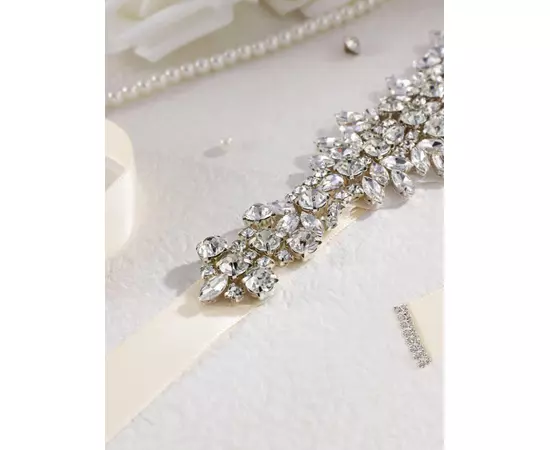 Cordonul este fabricat dintr-un material durabil și flexibil, care se ajustează confortabil pe corp, asigurând o fixare perfectă. Strasurile, dispuse în mod armonios și elegant pe întreaga lungime a cordonului, adaugă un plus de strălucire și rafinament, captând privirile și evidențiind eleganța purtătoarei.