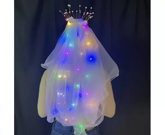 Coroana cu Voal de Mireasa si Luminite, Alb - 26343B