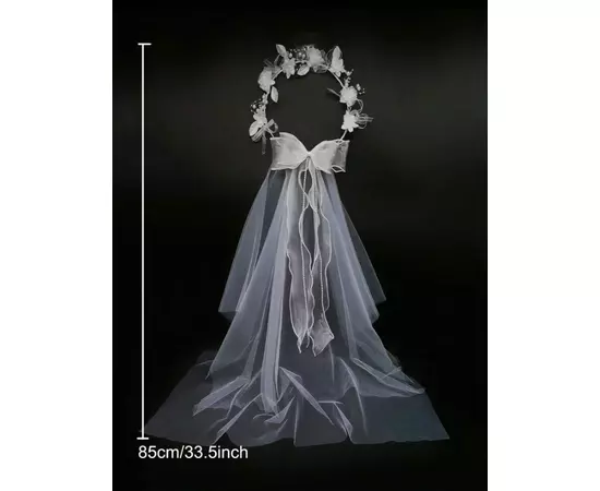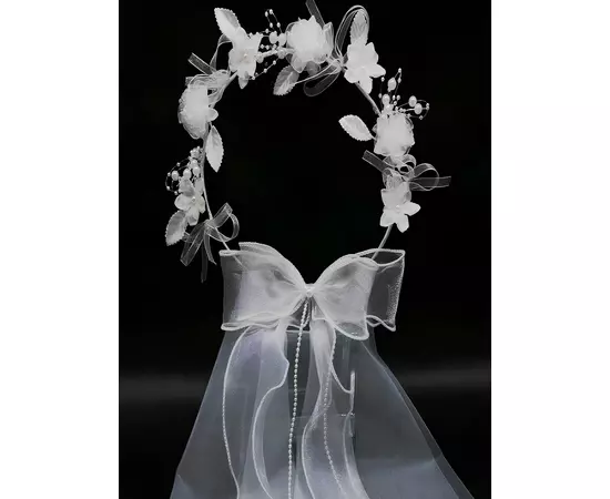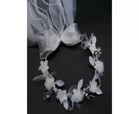 Coronita cu Voal, cu Perle Artificiale, 140x80 cm, Alb - 43187