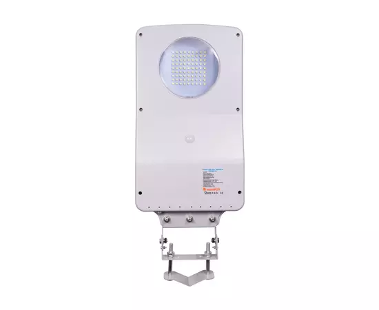 Lampa solara se monteaza la o inaltime de 5 - 6 metri, este realizata din ABS si are gradul de protectie IP65, asigurand protectie impotriva prafului si a jeturilor puternice de apa. Dimensiunile produsului sunt 410 x 215 x 45 mm.