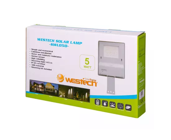 Corpul solar este prevazut cu o sursa de tip LED incorporata si are o putere de 5W, iar panoul solar are capacitatea de 6V. Amplasand lampa la exterior, in locuri insorite, panoul solar al acesteia poate lumina aproximativ 10 - 12 ore. Pozitionarea sa in locatii intunecoase poate influenta incarcarea acumulatorului si poate scurta durata de functionare a lampii pe timpul noptii.