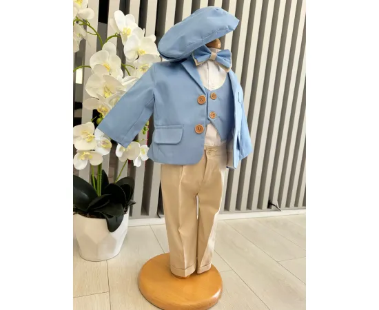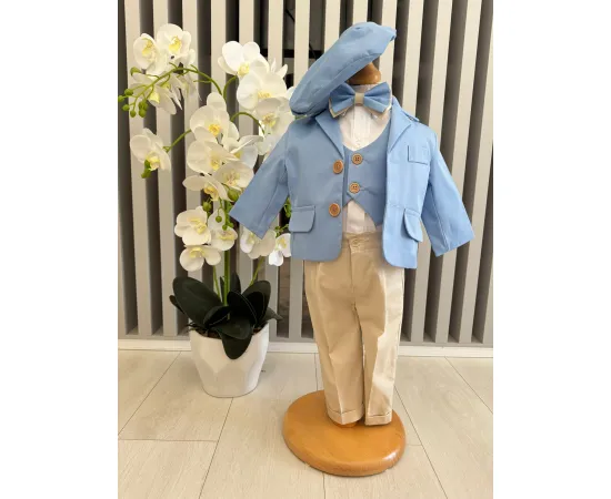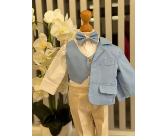 Costum botez 5 piese, albastru - DPH327