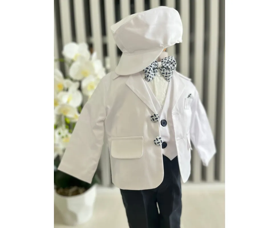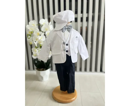 Costumul de botez pentru băieți este realizat cu grijă din materiale de calitate superioară, moi și delicate cu pielea sensibilă a bebelușului. Designul elegant îmbină rafinamentul clasic cu confortul absolut, fiind ideal pentru un eveniment special precum botezul
