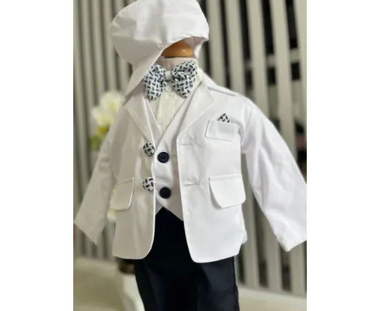 Setul contine : sacou, camasa, papion, pantalon, bereta