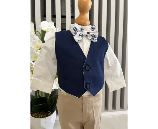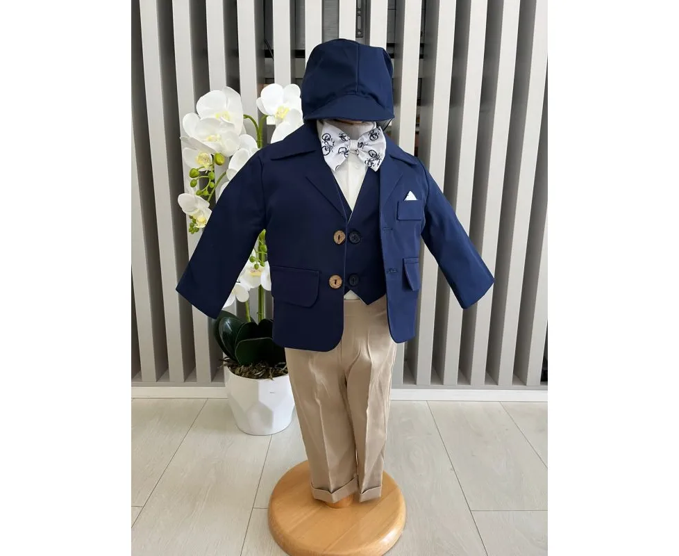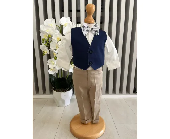Costumul de botez pentru băieți este realizat cu grijă din materiale de calitate superioară, moi și delicate cu pielea sensibilă a bebelușului. Designul elegant îmbină rafinamentul clasic cu confortul absolut, fiind ideal pentru un eveniment special precum botezul