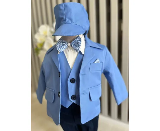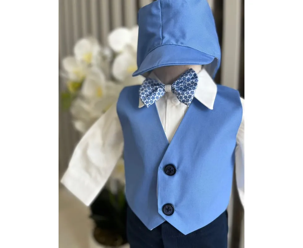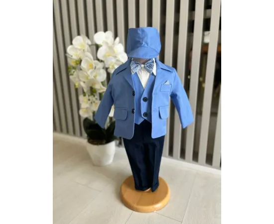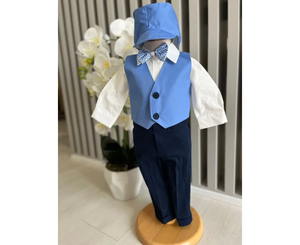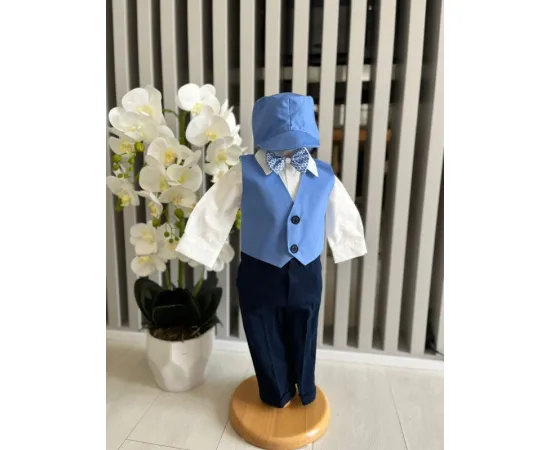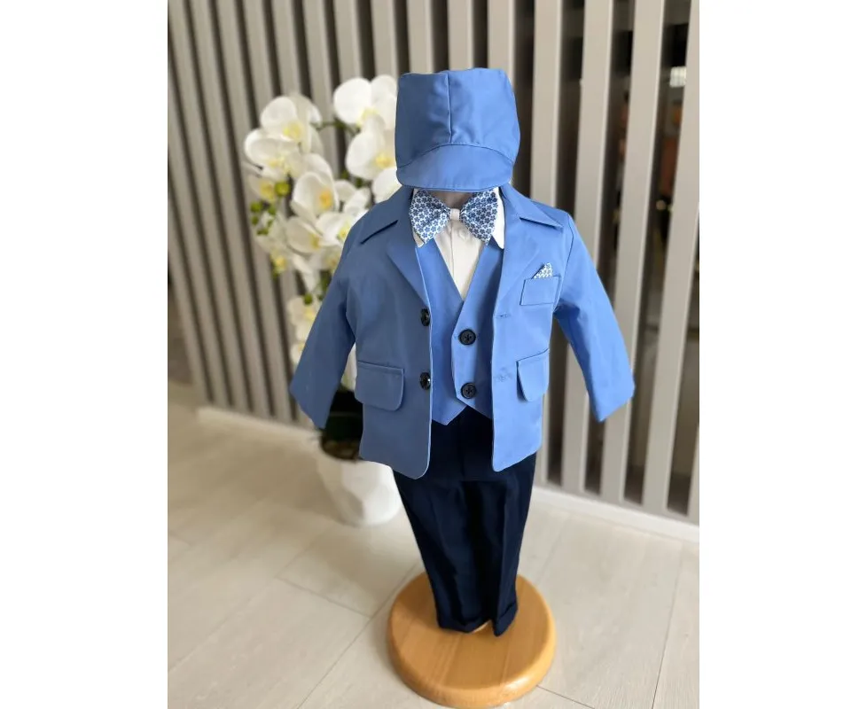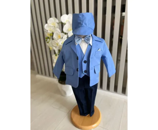 Costum botez 5 piese bumbac, albastru - DPH380