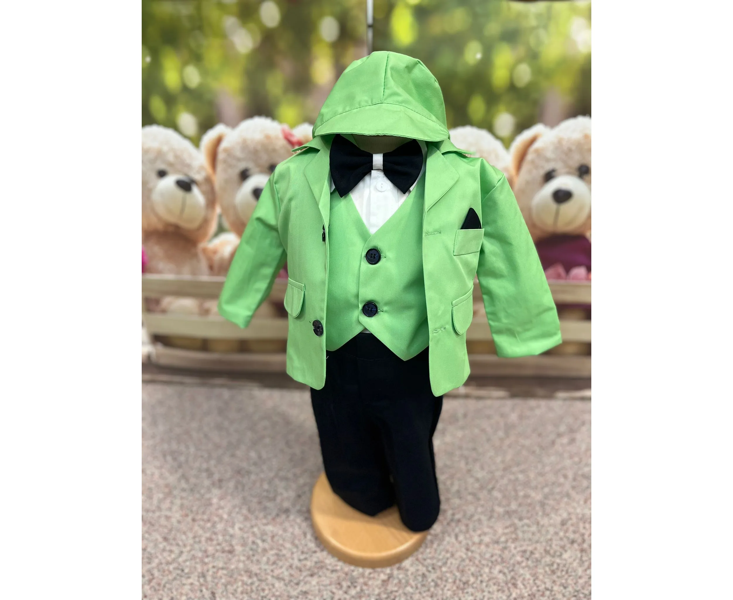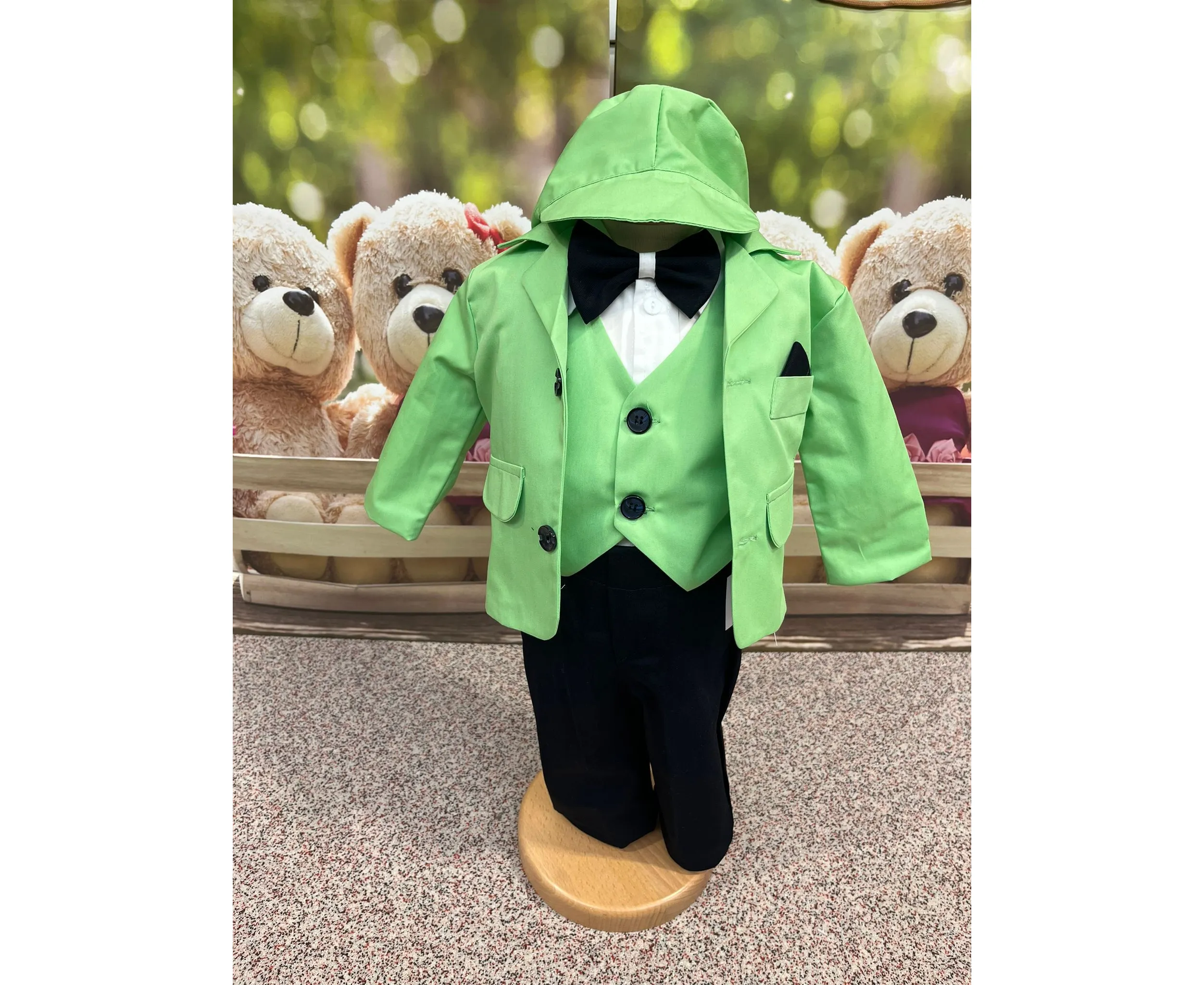 Setul contine : sacou, camasa, papion, pantalon, bereta