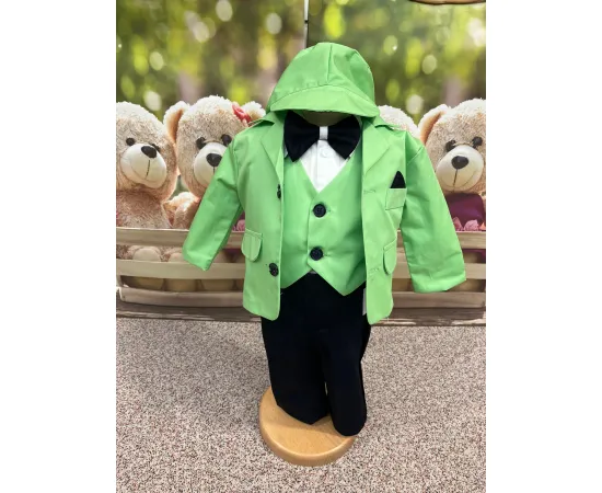 Costum botez 5 piese bumbac, verde mint - DPH375