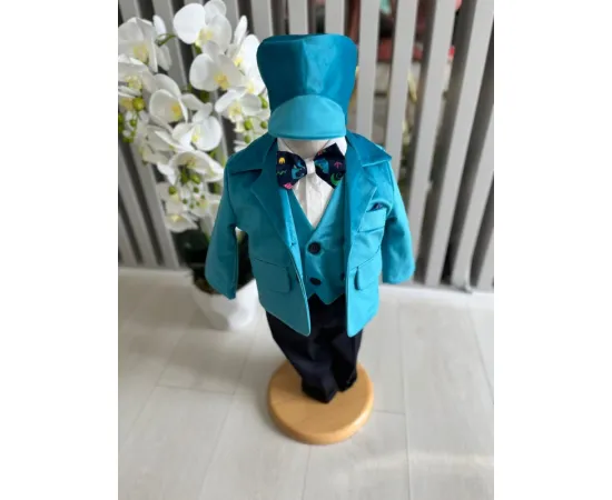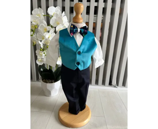 Setul contine : sacou, camasa, papion, pantalon, bereta