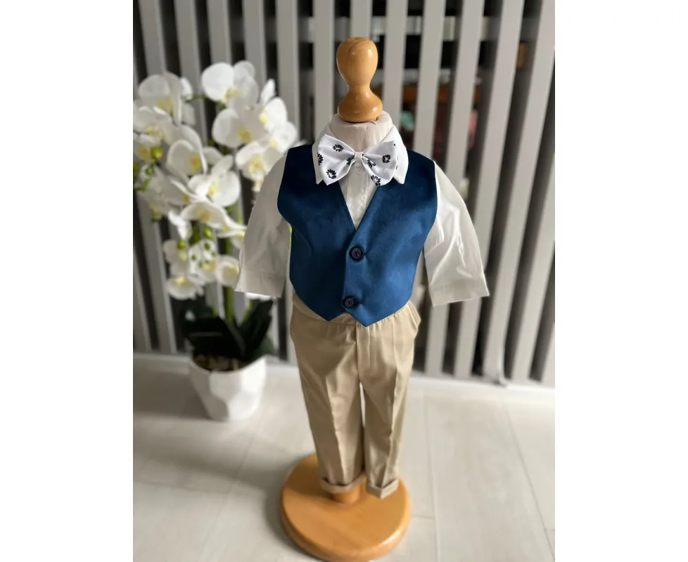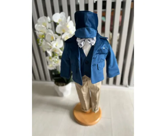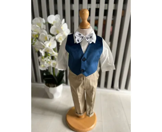 Costumul de botez pentru băieți este realizat cu grijă din materiale de calitate superioară, moi și delicate cu pielea sensibilă a bebelușului. Designul elegant îmbină rafinamentul clasic cu confortul absolut, fiind ideal pentru un eveniment special precum botezul
