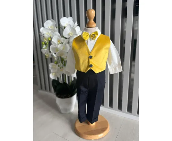 Costumul de botez pentru băieți este realizat cu grijă din materiale de calitate superioară, moi și delicate cu pielea sensibilă a bebelușului. Designul elegant îmbină rafinamentul clasic cu confortul absolut, fiind ideal pentru un eveniment special precum botezul