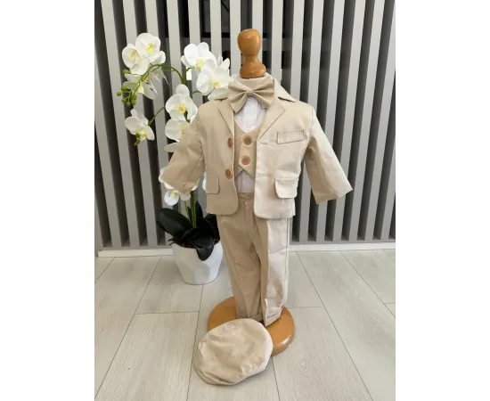 Costum botez 5 piese, cream - DPH326