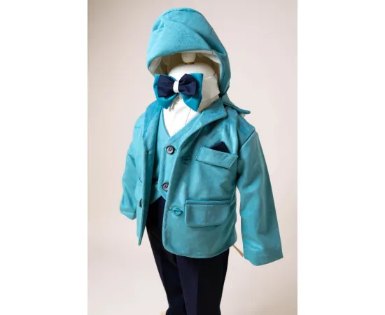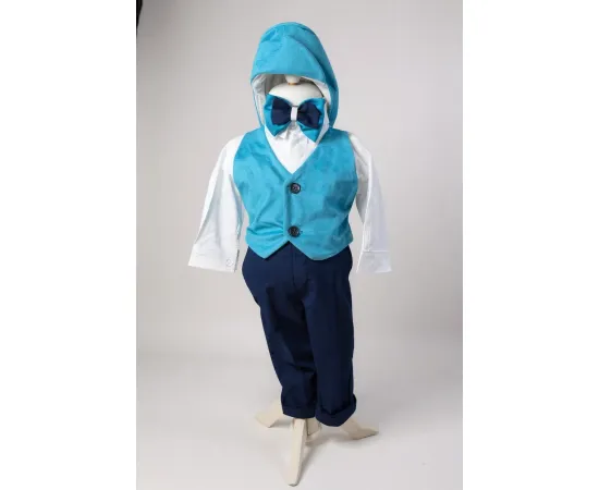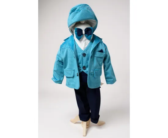 Costum botez catifea albastru azuriu- DPH309