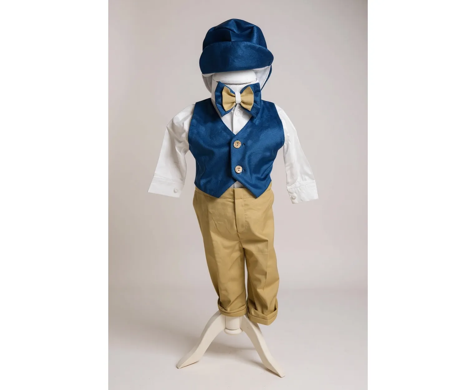 Costumul de botez pentru băieți este realizat cu grijă din materiale de calitate superioară, moi și delicate cu pielea sensibilă a bebelușului. Designul elegant îmbină rafinamentul clasic cu confortul absolut, fiind ideal pentru un eveniment special precum botezul