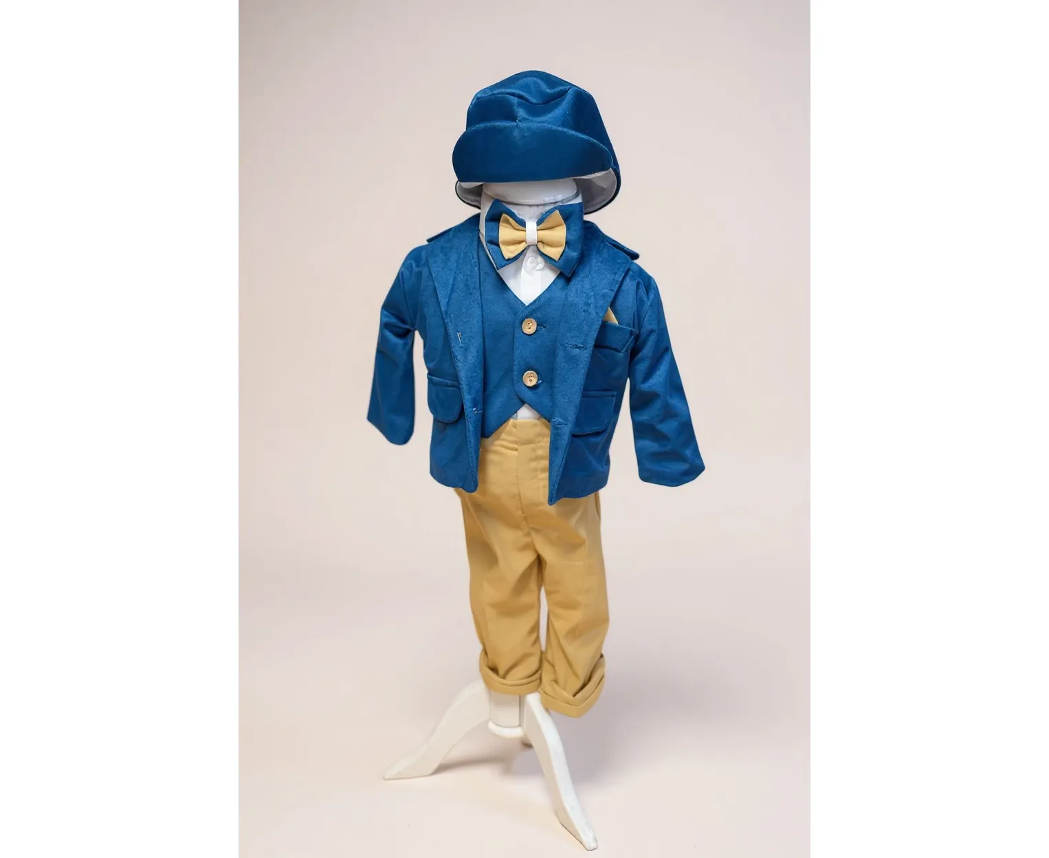 Setul contine : sacou, camasa, papion, pantalon, bereta