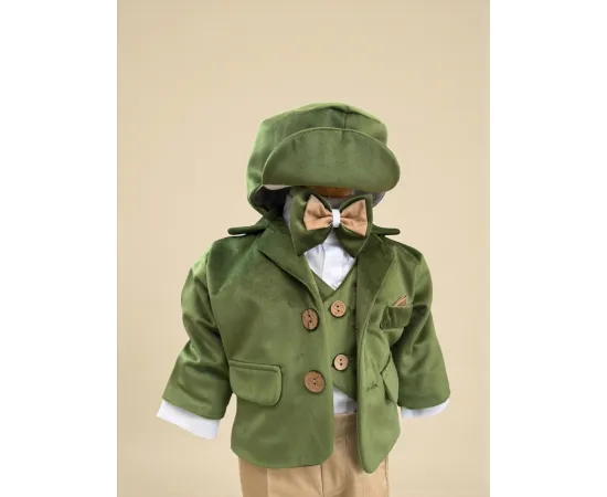 Setul contine : sacou, camasa, papion, pantalon, bereta