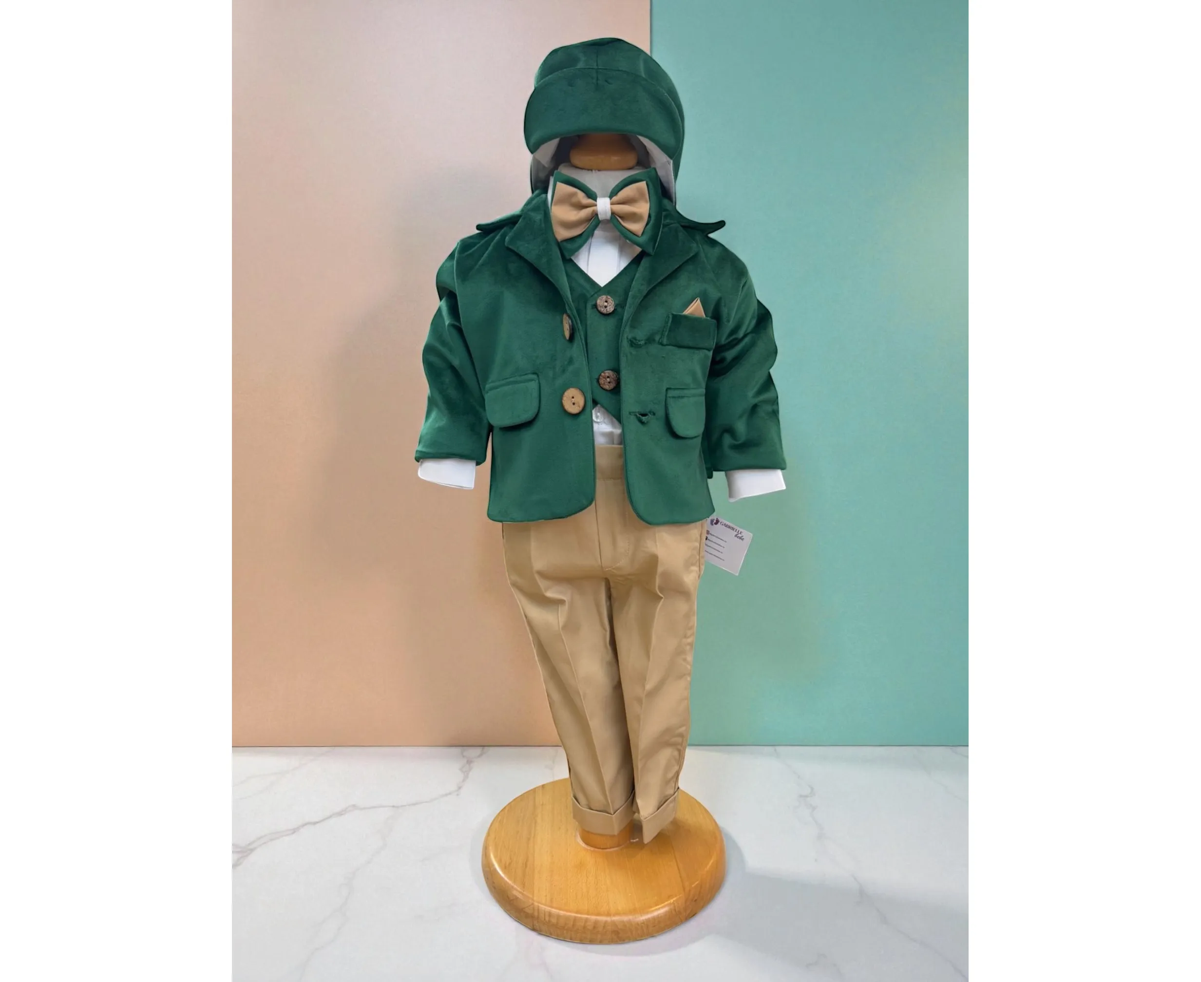 Setul contine : sacou, camasa, papion, pantalon, bereta