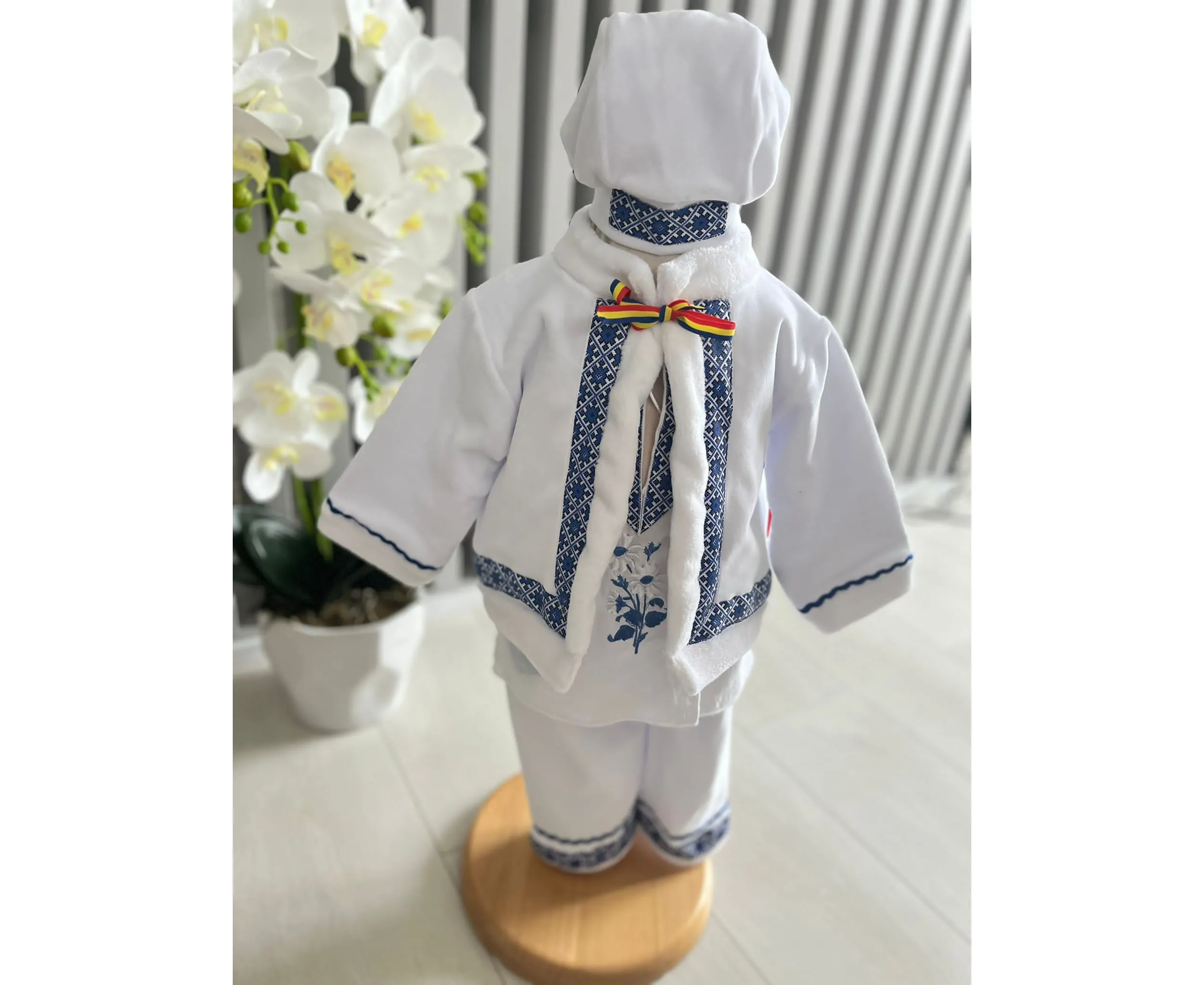 Setul contine : jacheta, camasa bumbac ,caciulita, pantalon
