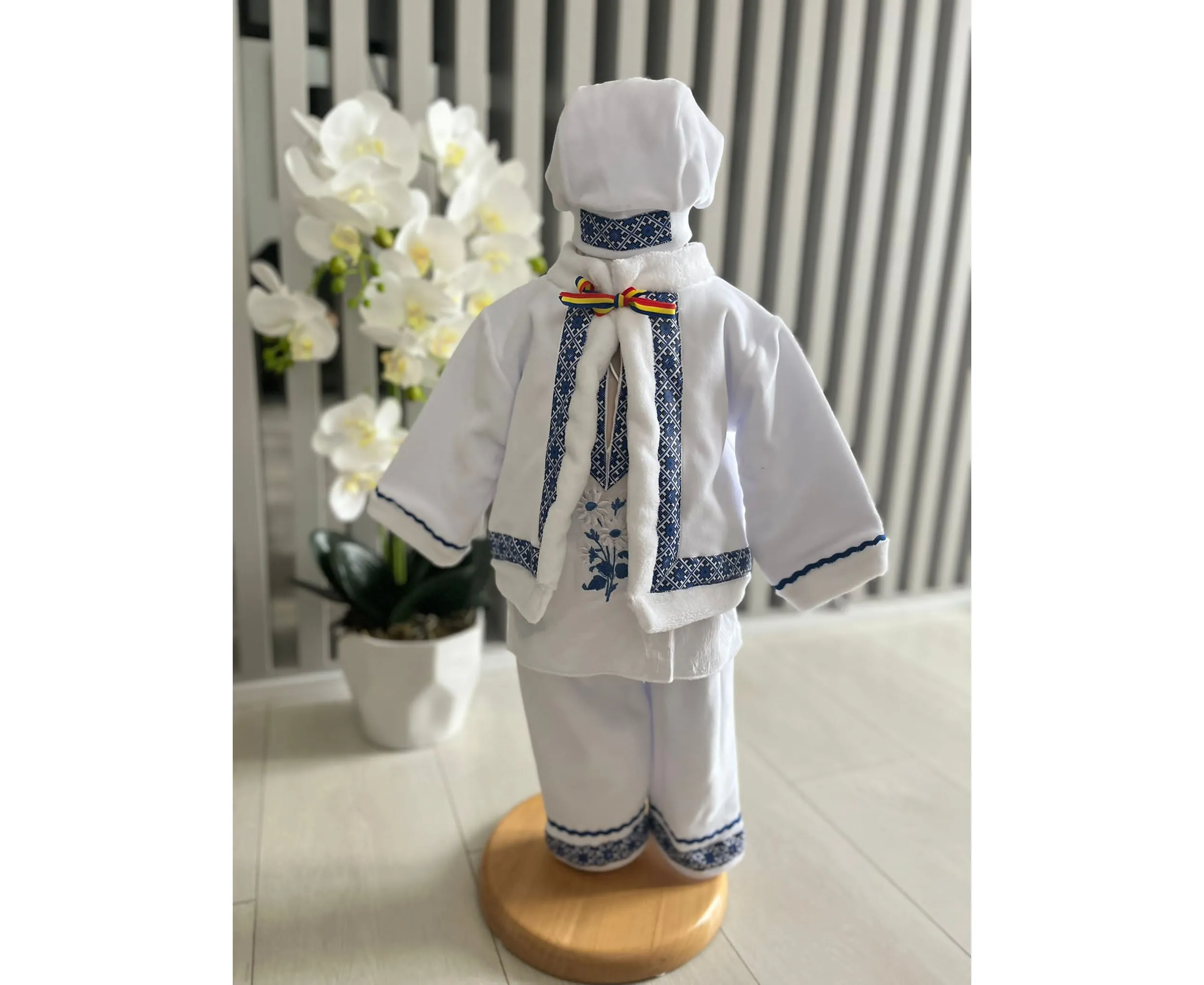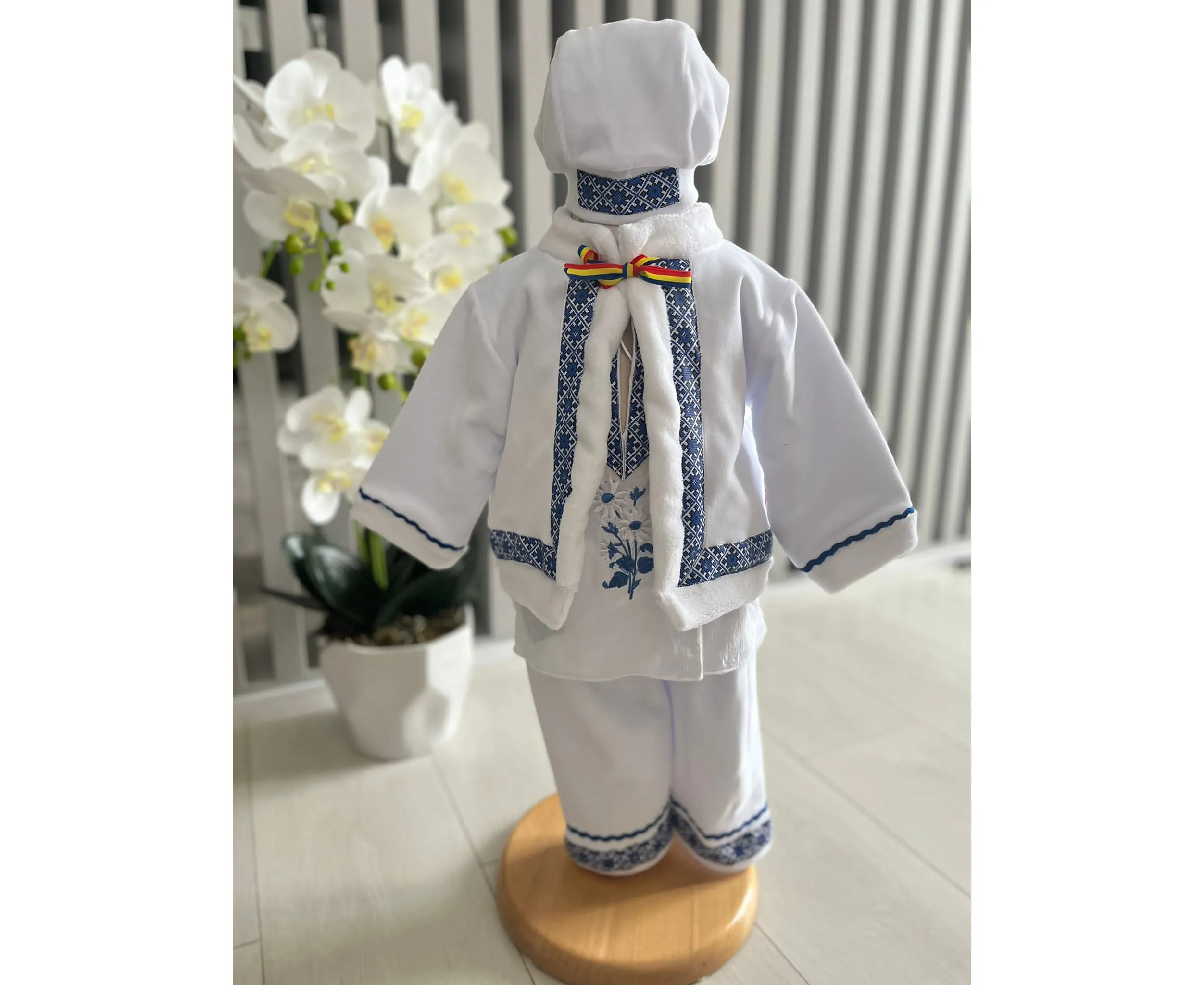 Costumul de botez pentru băieți este realizat cu grijă din materiale de calitate superioară, moi și delicate cu pielea sensibilă a bebelușului. Designul elegant îmbină rafinamentul clasic cu confortul absolut, fiind ideal pentru un eveniment special precum botezul