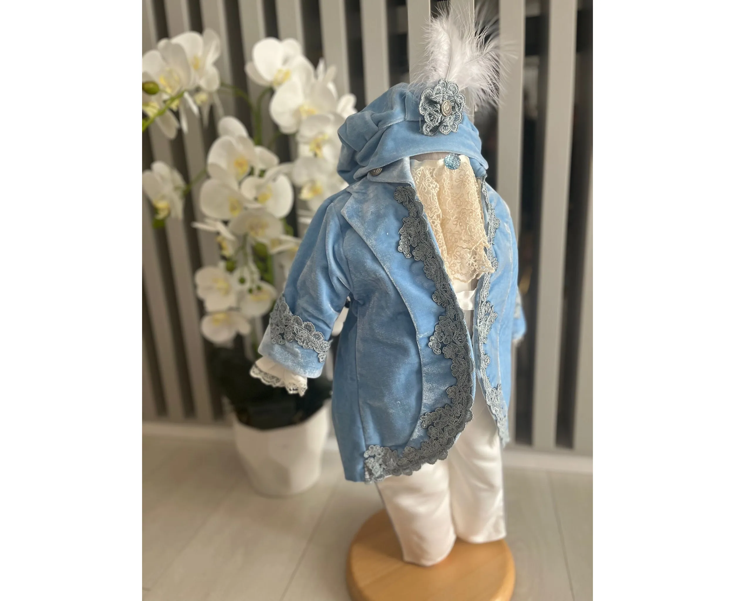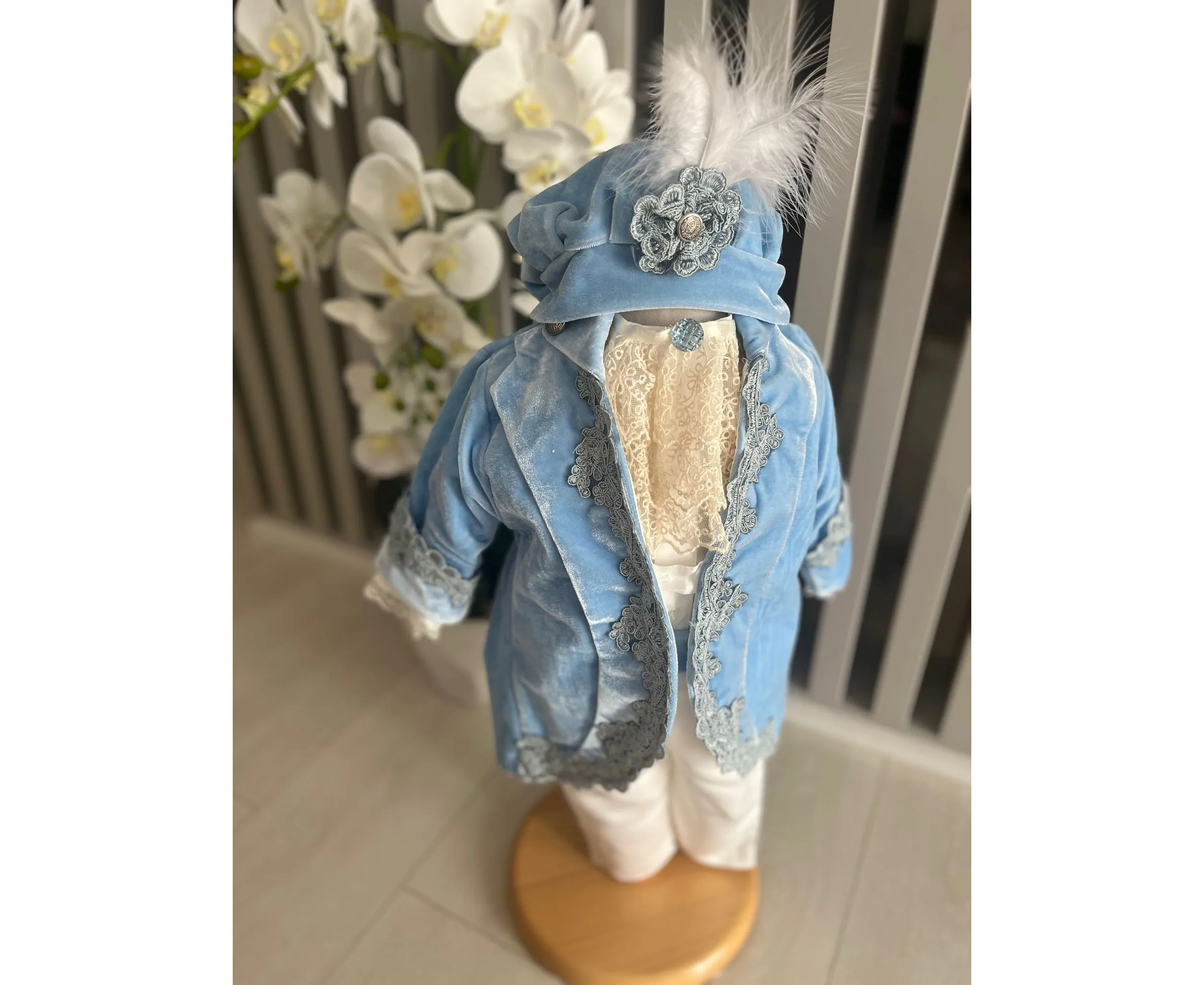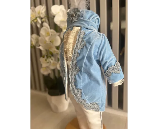 Costumul de botez pentru băieți este realizat cu grijă din materiale de calitate superioară, moi și delicate cu pielea sensibilă a bebelușului. Designul elegant îmbină rafinamentul clasic cu confortul absolut, fiind ideal pentru un eveniment special precum botezul