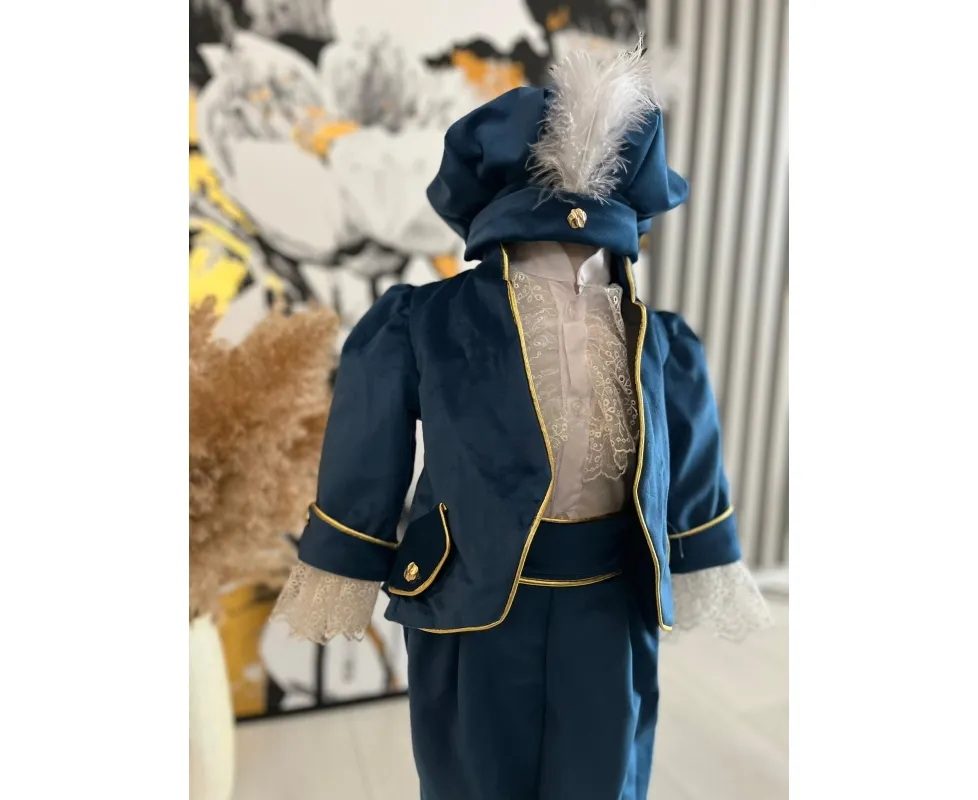 Setul contine : sacou, camasa , pantalon, caciula, botosei