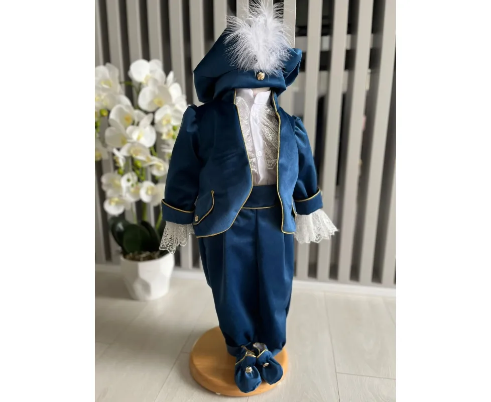 Costumul de botez pentru băieți este realizat cu grijă din materiale de calitate superioară, moi și delicate cu pielea sensibilă a bebelușului. Designul elegant îmbină rafinamentul clasic cu confortul absolut, fiind ideal pentru un eveniment special precum botezul