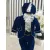 Costum botez print, albastru inchis - DPH356