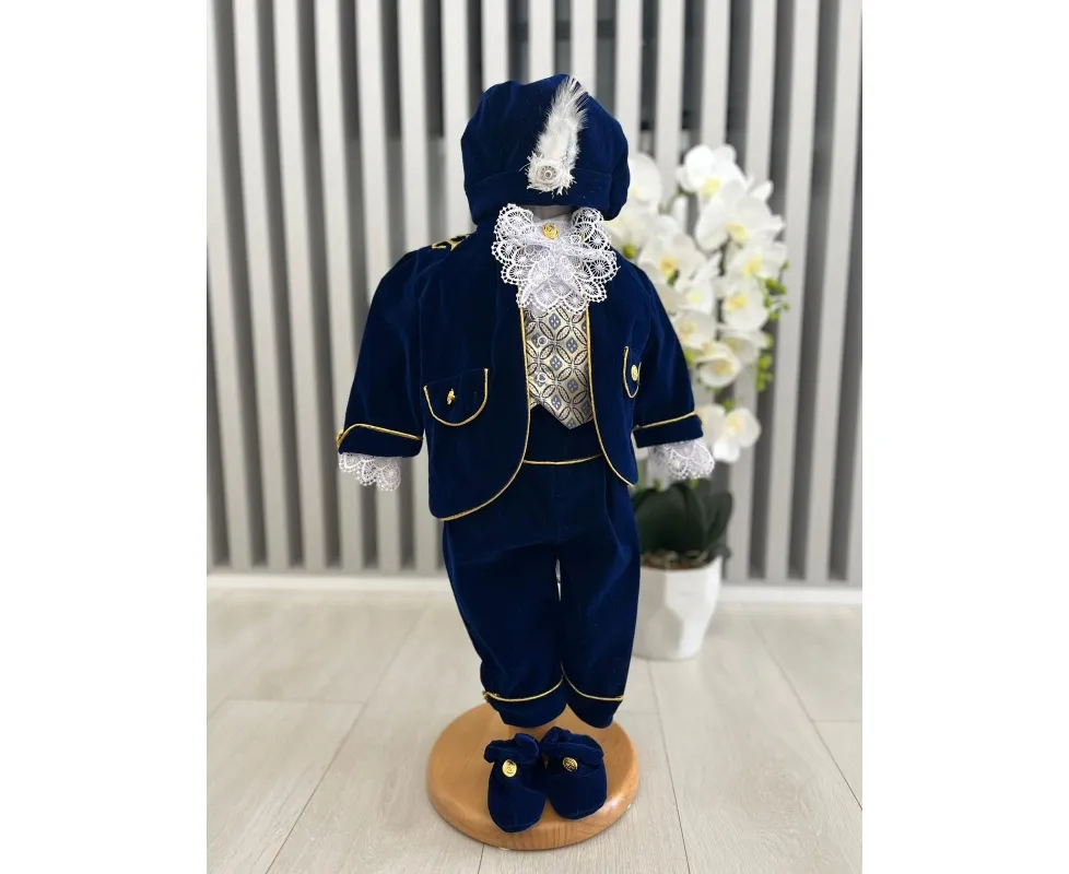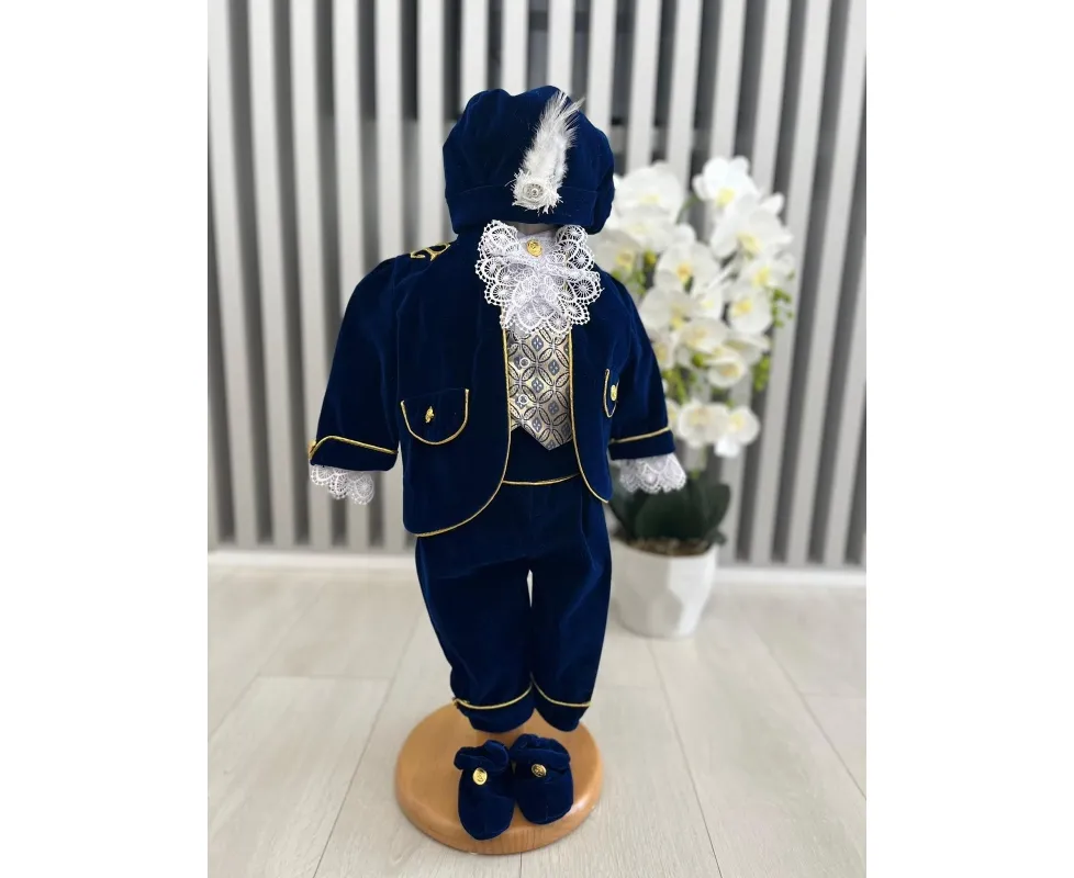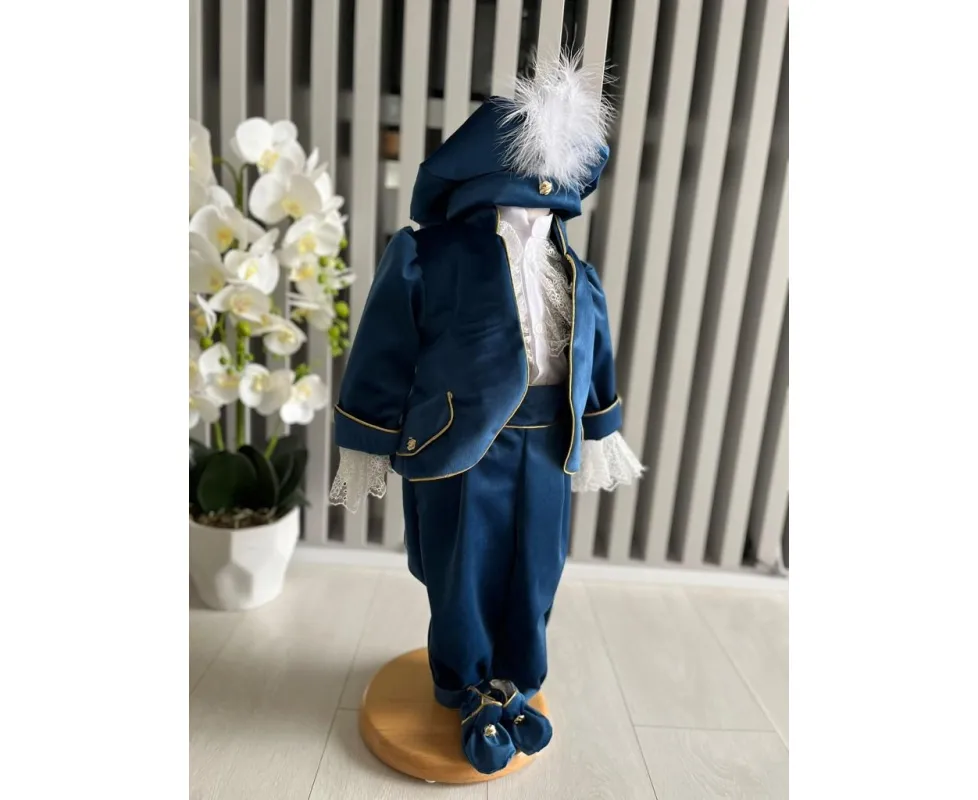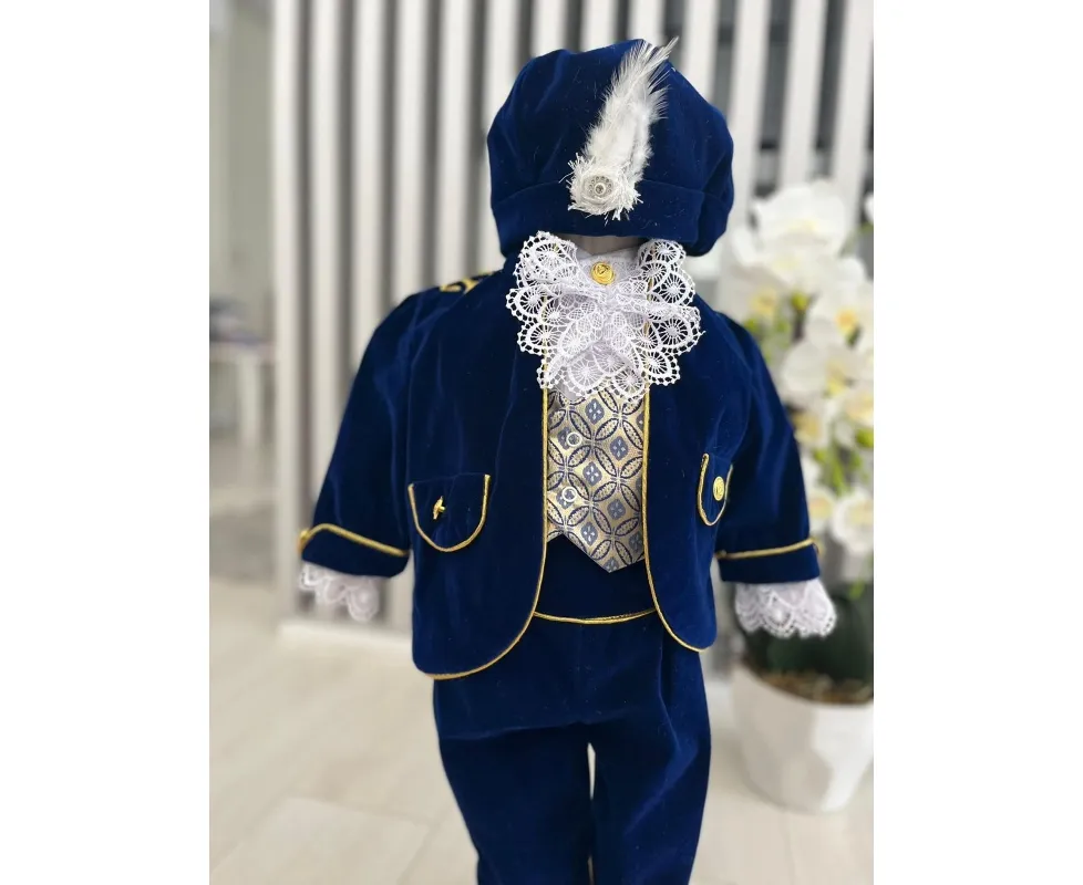Costumul de botez pentru băieți este realizat cu grijă din materiale de calitate superioară, moi și delicate cu pielea sensibilă a bebelușului. Designul elegant îmbină rafinamentul clasic cu confortul absolut, fiind ideal pentru un eveniment special precum botezul
