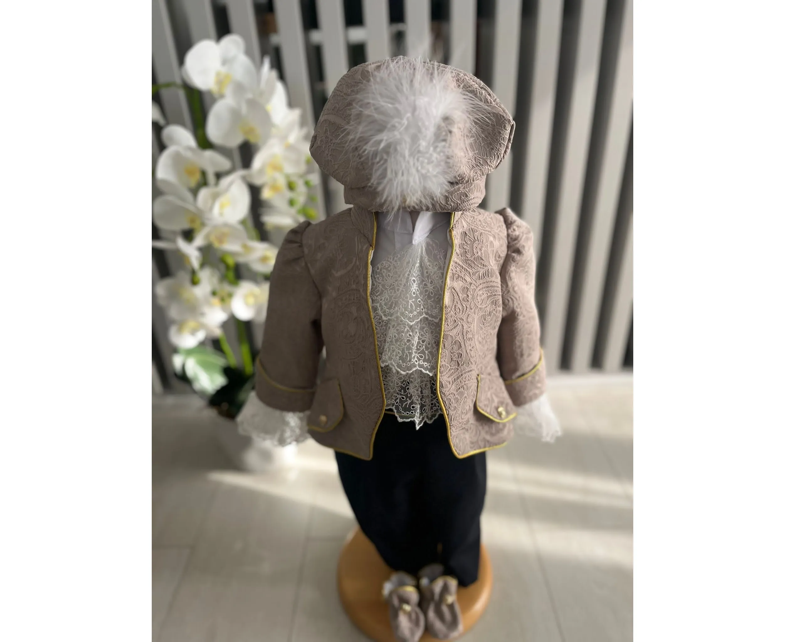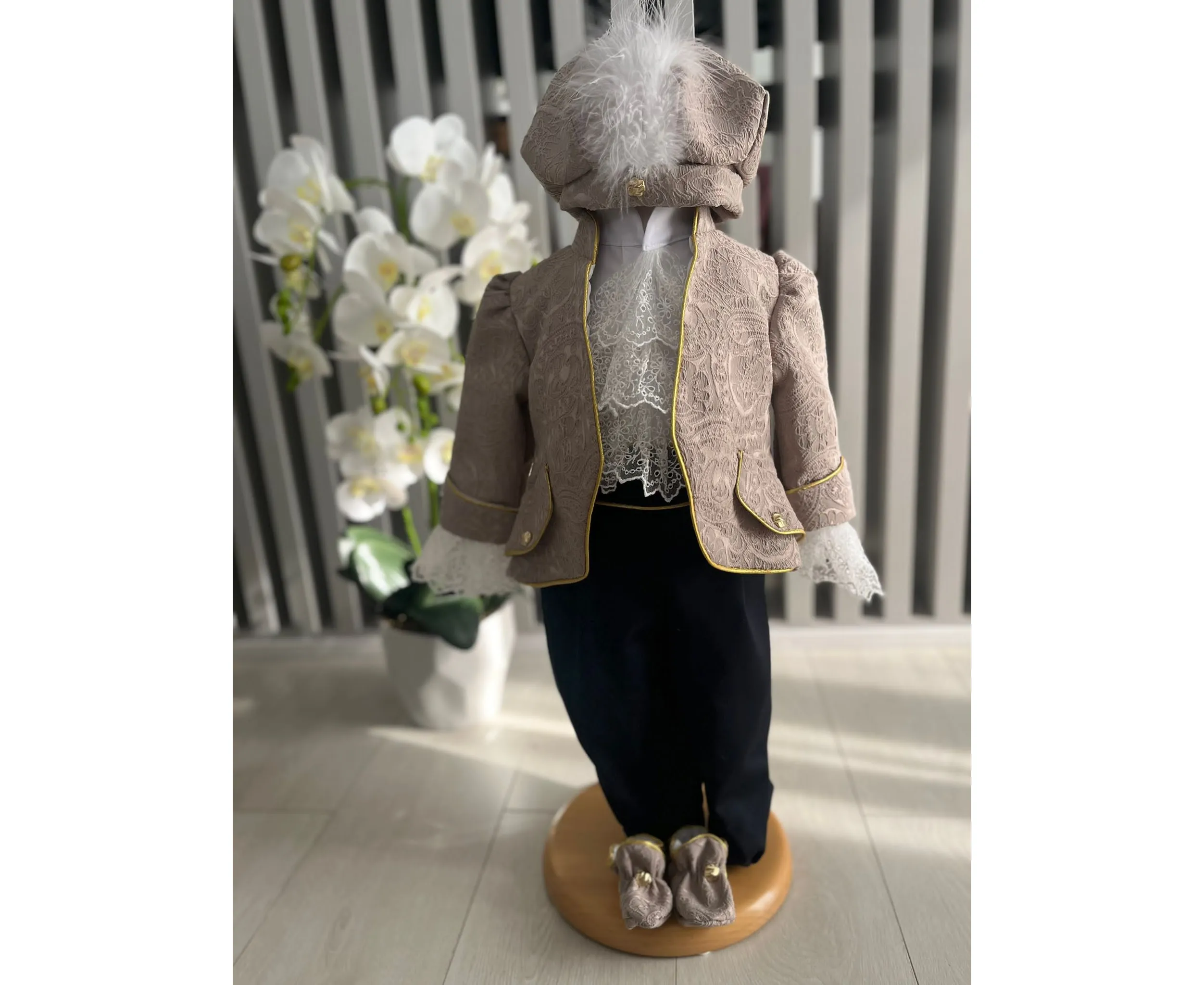 Costumul de botez pentru băieți este realizat cu grijă din materiale de calitate superioară, moi și delicate cu pielea sensibilă a bebelușului. Designul elegant îmbină rafinamentul clasic cu confortul absolut, fiind ideal pentru un eveniment special precum botezul
