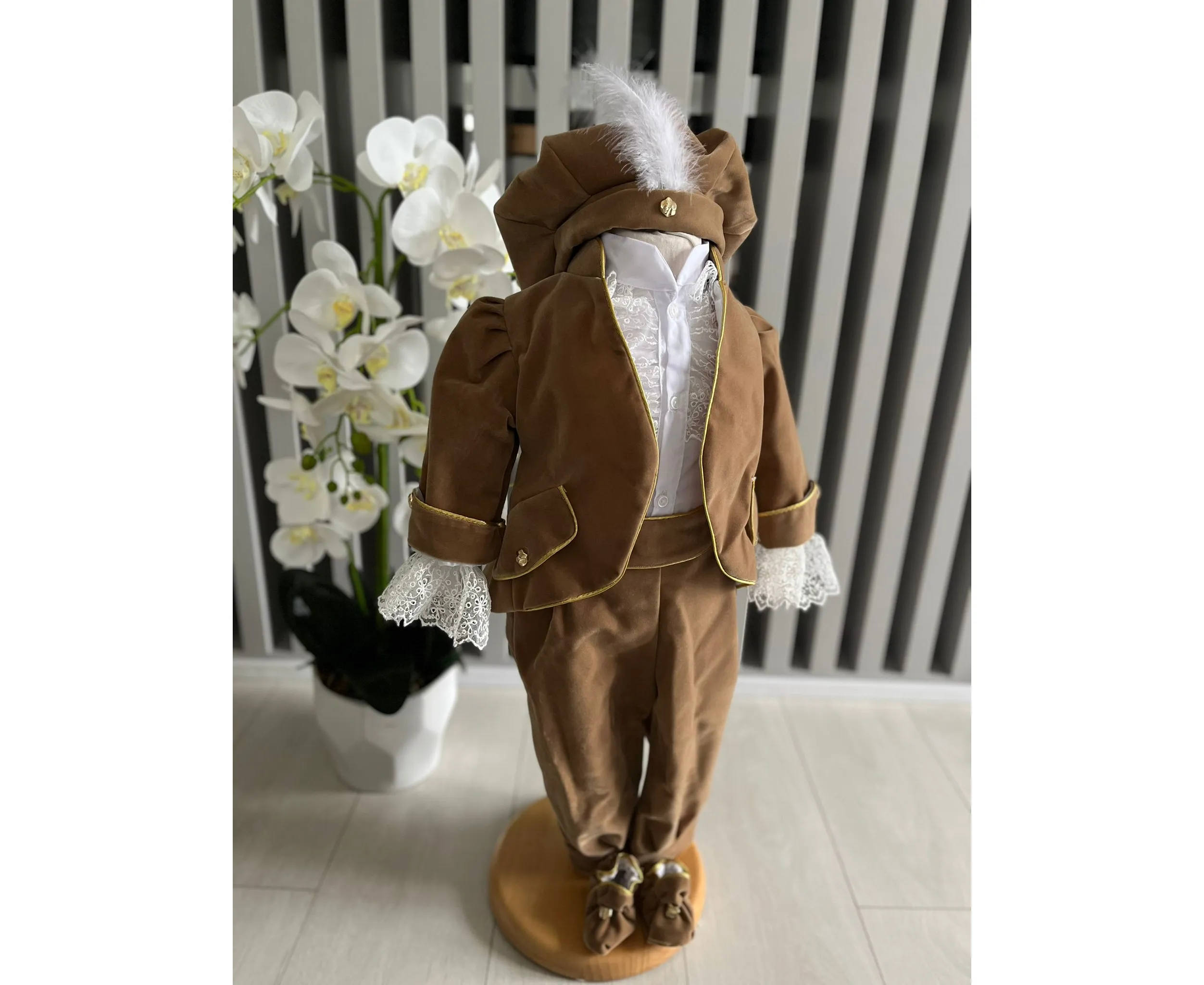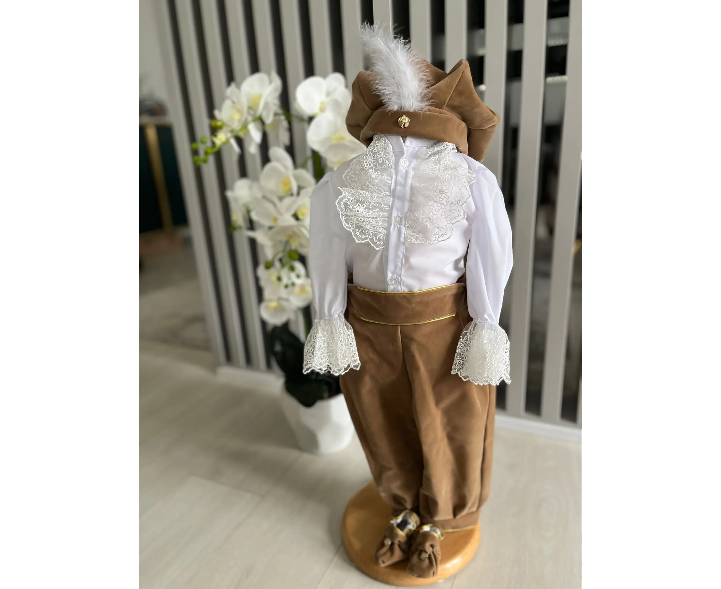 Costumul de botez pentru băieți este realizat cu grijă din materiale de calitate superioară, moi și delicate cu pielea sensibilă a bebelușului. Designul elegant îmbină rafinamentul clasic cu confortul absolut, fiind ideal pentru un eveniment special precum botezul