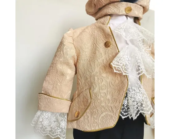 Setul contine : sacou, camasa, botosei, pantalon, bereta
