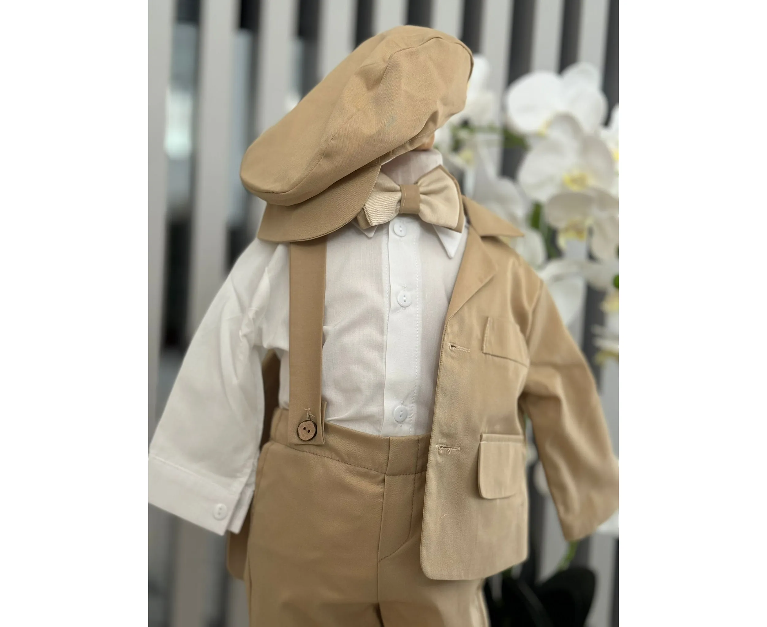 Costumul de botez pentru băieți este realizat cu grijă din materiale de calitate superioară, moi și delicate cu pielea sensibilă a bebelușului. Designul elegant îmbină rafinamentul clasic cu confortul absolut, fiind ideal pentru un eveniment special precum botezul