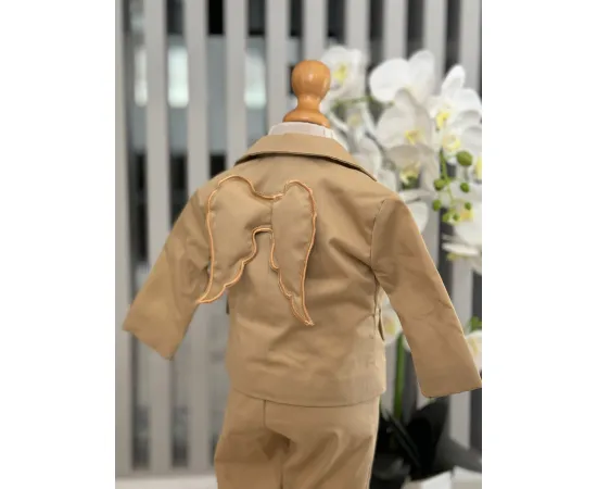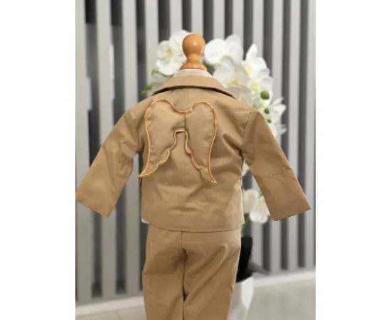 Costum botez, print cu aripi cream - DPH321