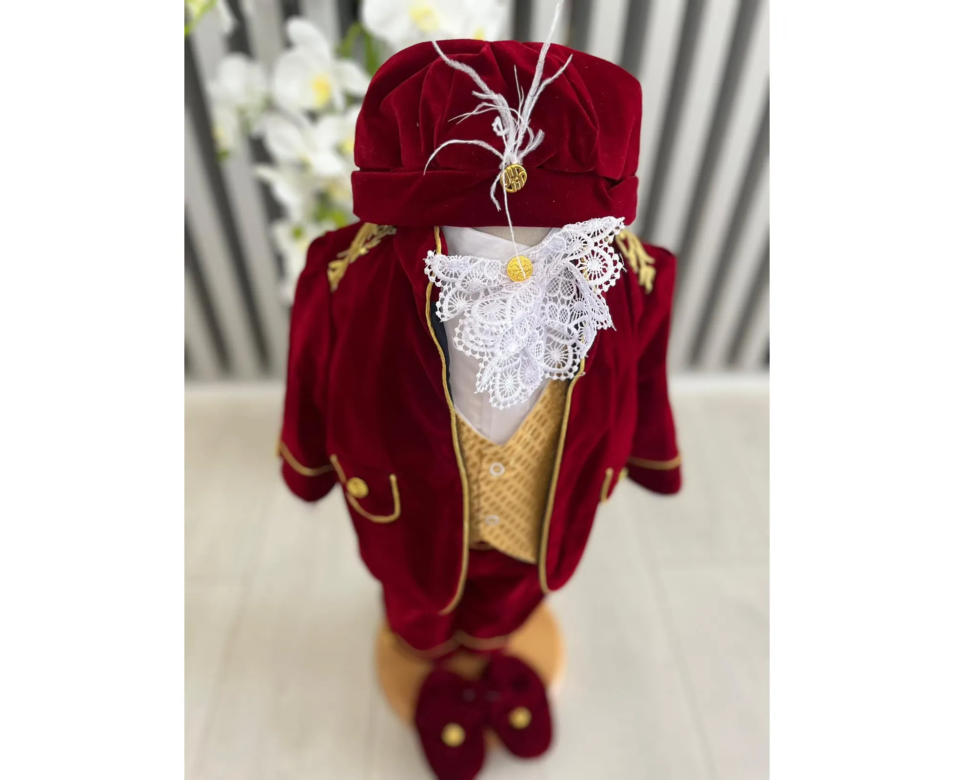 Costumul de botez pentru băieți este realizat cu grijă din materiale de calitate superioară, moi și delicate cu pielea sensibilă a bebelușului. Designul elegant îmbină rafinamentul clasic cu confortul absolut, fiind ideal pentru un eveniment special precum botezul