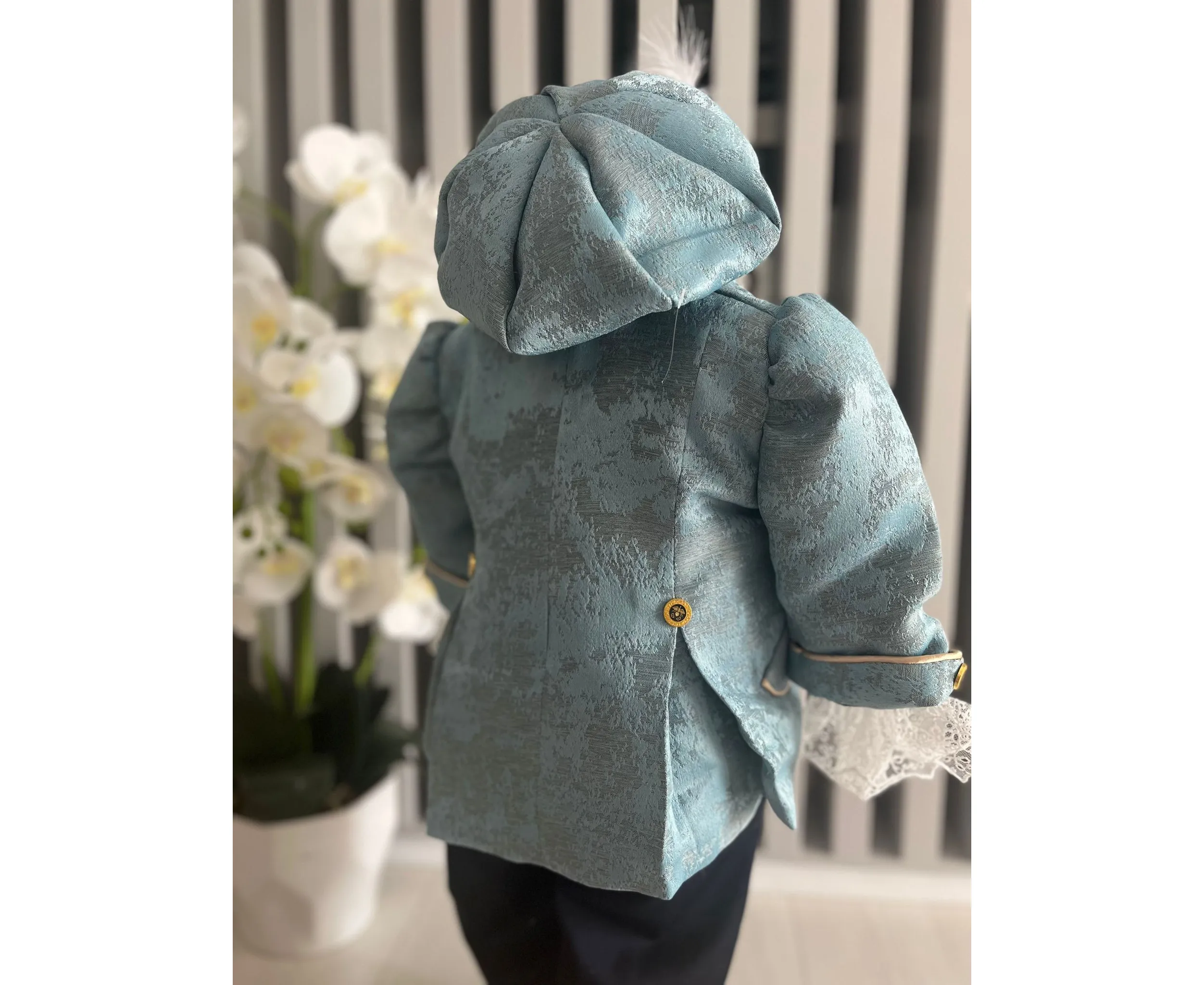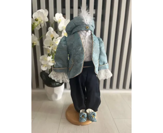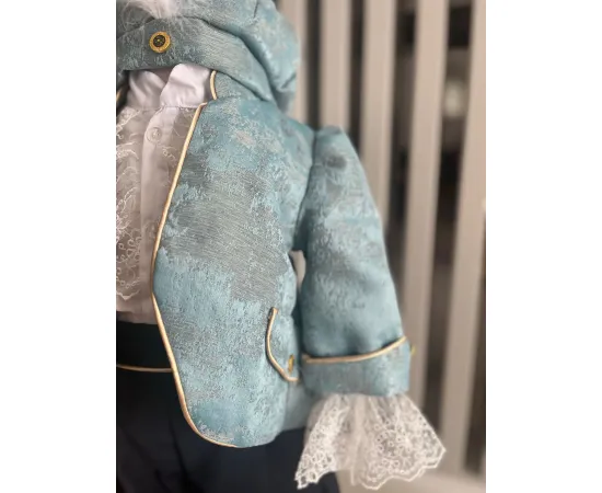 Costumul de botez pentru băieți este realizat cu grijă din materiale de calitate superioară, moi și delicate cu pielea sensibilă a bebelușului. Designul elegant îmbină rafinamentul clasic cu confortul absolut, fiind ideal pentru un eveniment special precum botezul