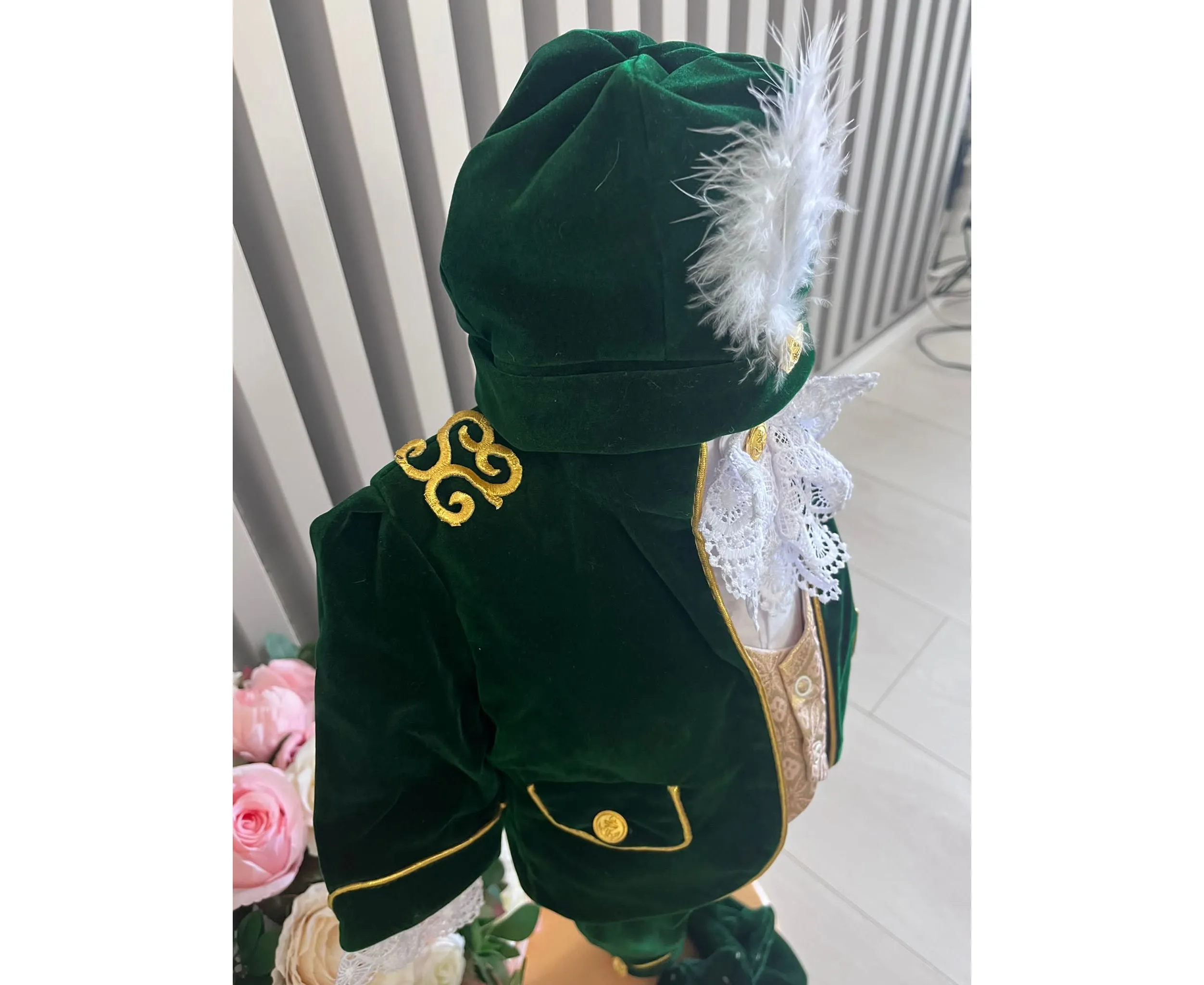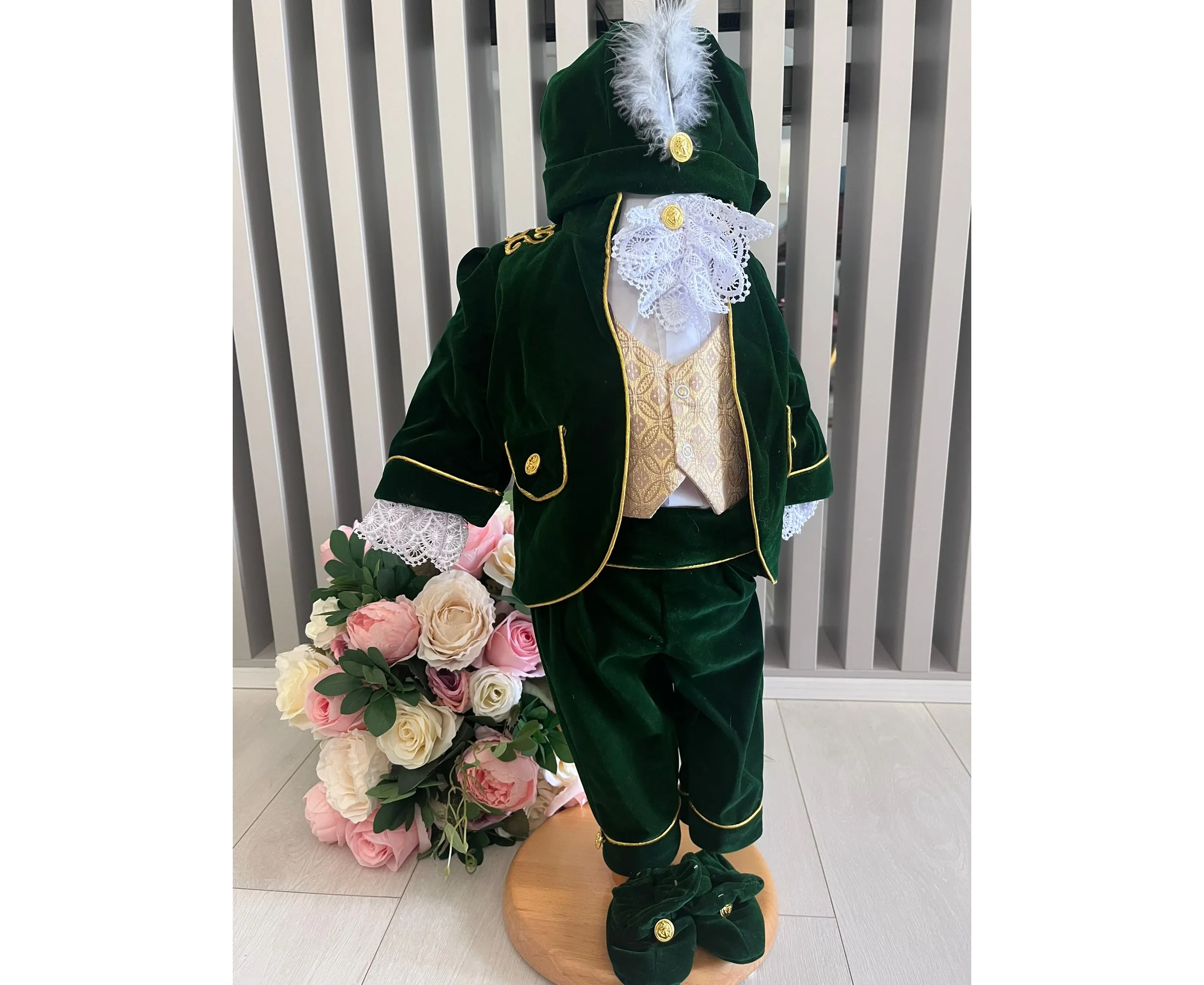 Setul contine : jacheta, camasa, botosei, pantalon, bereta.