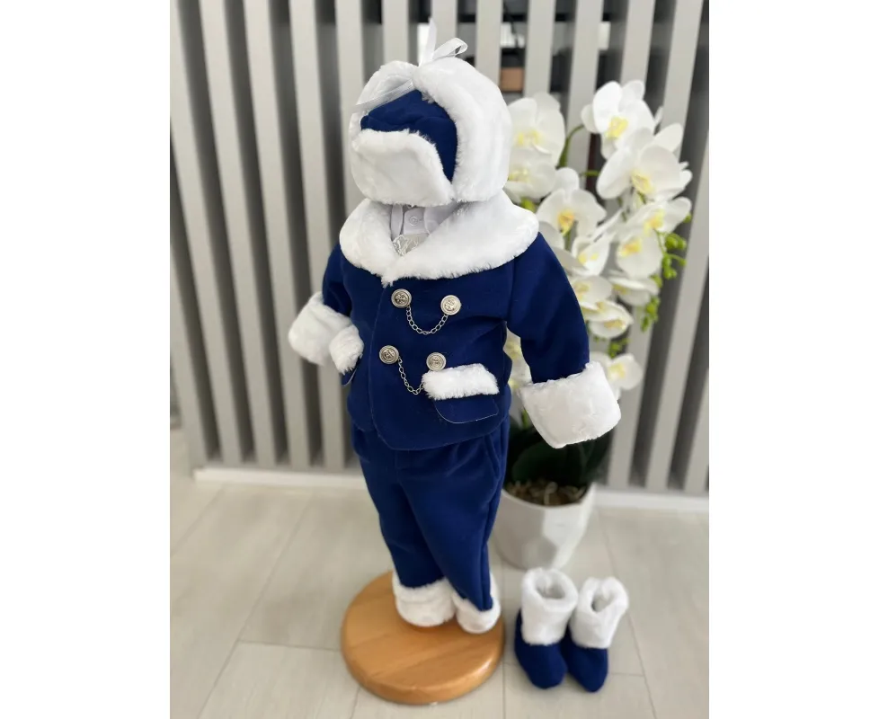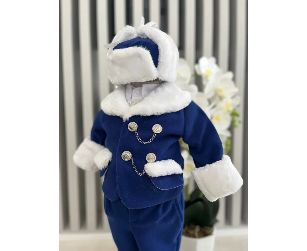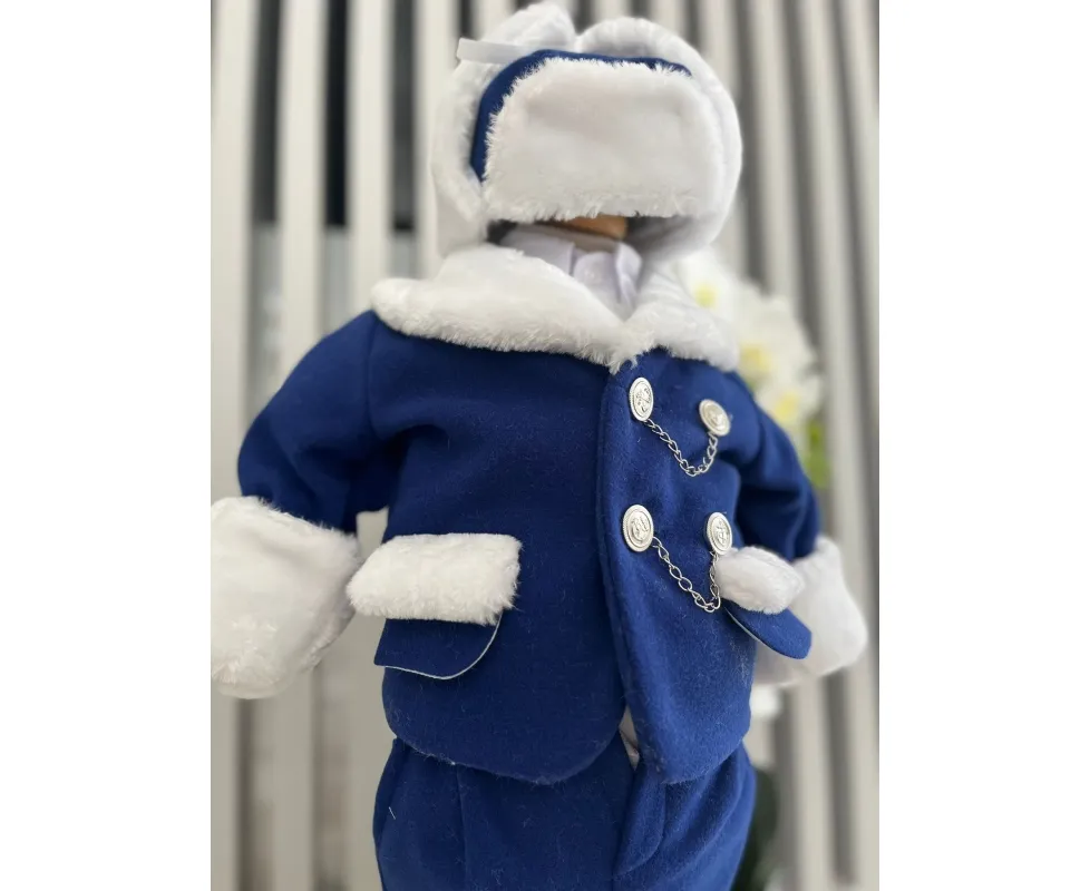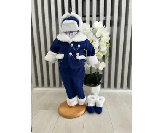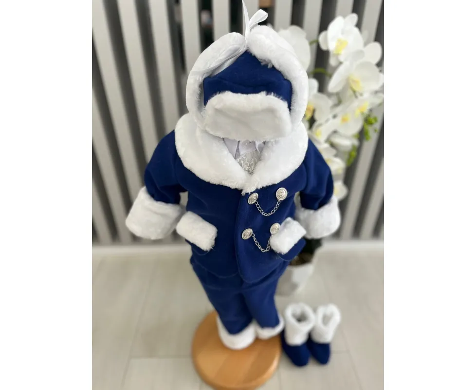 Setul contine : sacou, camasa, pantalon, caciula, botosei