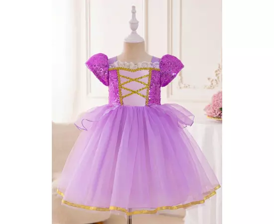 Această rochiță fermecătoare este alegerea perfectă pentru micile prințese care iubesc movul, strălucirea și momentele magice! Cu o nuanță delicată de mv și sclipici fin care captează lumina la fiecare mișcare, rochița adaugă un strop de magie oricărei ocazii.