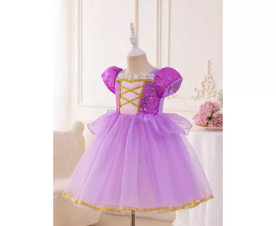 Această rochiță fermecătoare este alegerea perfectă pentru micile prințese care iubesc movul, strălucirea și momentele magice! Cu o nuanță delicată de mv și sclipici fin care captează lumina la fiecare mișcare, rochița adaugă un strop de magie oricărei ocazii.