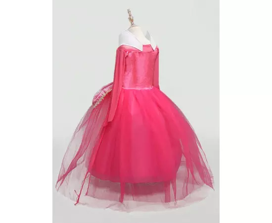 Această rochiță elegantă, inspirată de grația și frumusețea Prințesei Aurora, este perfectă pentru fetițele care iubesc poveștile cu zâne bune, castele fermecate și rochii de bal. Cu nuanțe delicate de roz și detalii regale, fiecare mică domnișoară va străluci ca într-un basm.