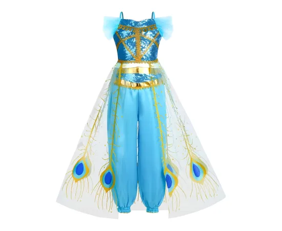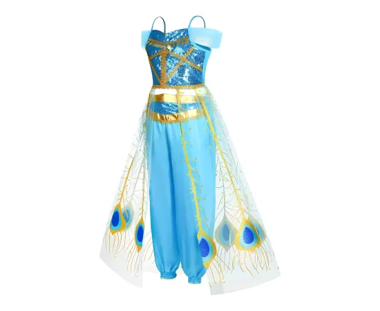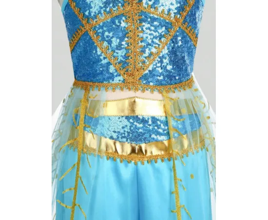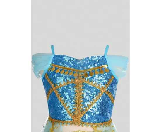 Inspirată din povestea celebrei prințese din „Aladdin”, această rochie transformă orice fetiță într-o adevărată eroină orientală. Cu detalii aurii, aplicații strălucitoare și un croi elegant, costumul redă perfect farmecul exotic și stilul rafinat al lui Jasmine.
