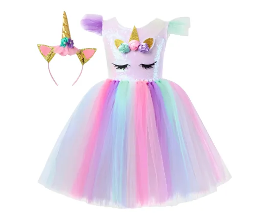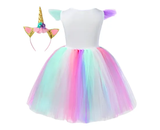 Costum Disney - Rochie Unicorn cu Tul Colorat si Bentita